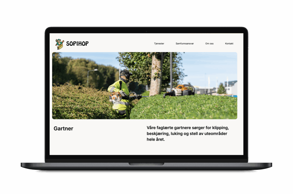 Vi har designet og utviklet ny nettside for Sopihop. Nettsiden er laget for å være ren, informativ og enkel å bruke, med god struktur og oversiktlig navigering.